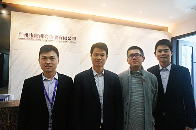 同湘會(huì)總經(jīng)理胥剛(左二)協(xié)同事與本網(wǎng)總經(jīng)理何偉東(右二)合影