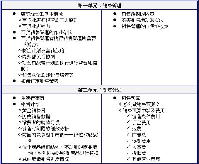 幫你制定現代百貨銷售管理體系 如何打造高效的銷售隊伍 百貨店鋪經營的三個實用原則 營銷戰略規劃的執行及監督體系建立 幫你分析預算何其重要 數字化管理在銷售體系的運用
