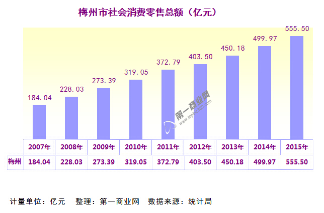 梅州市社會(huì)消費(fèi)品零售總額