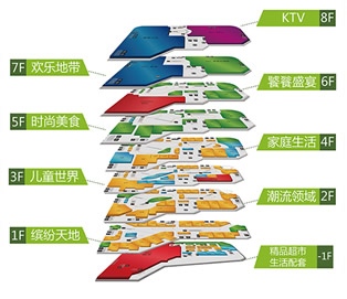 白云匯廣場,突破傳統商業模式,緊跟趨勢,注重錯位發展,引進品牌實力優質商家,擴大不受電商沖擊的餐飲、娛樂業態的經營占比,于商場每層都設有特色主題餐飲。項目負一層為精品超市,一層為繽紛天地,二層為潮流領域,三層為兒童世界,四層為家庭生活,五層為時尚美食,六層為饕餮盛宴,7層為歡樂地帶,8層為KTV,充分滿足顧客們吃喝玩樂的需求,更藉以帶動各層人流量,力求實現優中更優、強中更強。